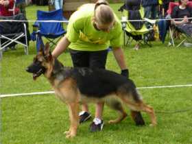 | Kiami´s Jacki, Livtidskåret AK-DK, AK, IPO I, FP, UHP, HD-A, AD-0, DNA, født 27.08.11.: (Calif von Arlett, født 05.09.08.: AK-D, SchH III, AD, BH, HD-A, AD-0, DNA, - Ida aus Agrigento, AK I, SchH I, AD, BH, HD-A, AD-0, DNA,) Dommerbeskrivelse: Kombiskue Kreds 11, Randers d. 28.10.2012: - Dommer: Michael Lumby. Over middelstor, middelkraftig feminin tæve af fortrinlig type, særdeles gode højde- længdeforhold, godt hoved, normal manke, lige ryg, lidt afskydende kryds, lidt stejl overarm, fortrinlig vinklet bag, harmoniske brystforhold, korrekt front, træder lige for og bag, regelmæssige harmoniske bevægelser. Dommerbeskrivelse: Avlskåring Kreds 71, Grenaa d. 04.10.2014: - Dommer: Poul Meineche.