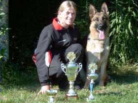 | Kiami´s Koko, født 18.01.04.: AK I, BHP I, FP, UHP, HD-A, AD-0, DNA: (Romeo von Pallas Athene, AK I, SchH III, ”a”, DNA, - Rebetas Ulja, AK I, BHP I, HD-normal, DNA,)