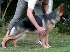 | Kiami´s Malou, født 25.03.05.: UHP, (Eiko vom Haus Hazelda, AK I, SchH III, HD-normal, DNA, - AVKL Kiami´s Ilja, AK, BHP I, UHP, HD "a" normal, Albuer AA 00, DNA,) | Foto: Mats Höglund |